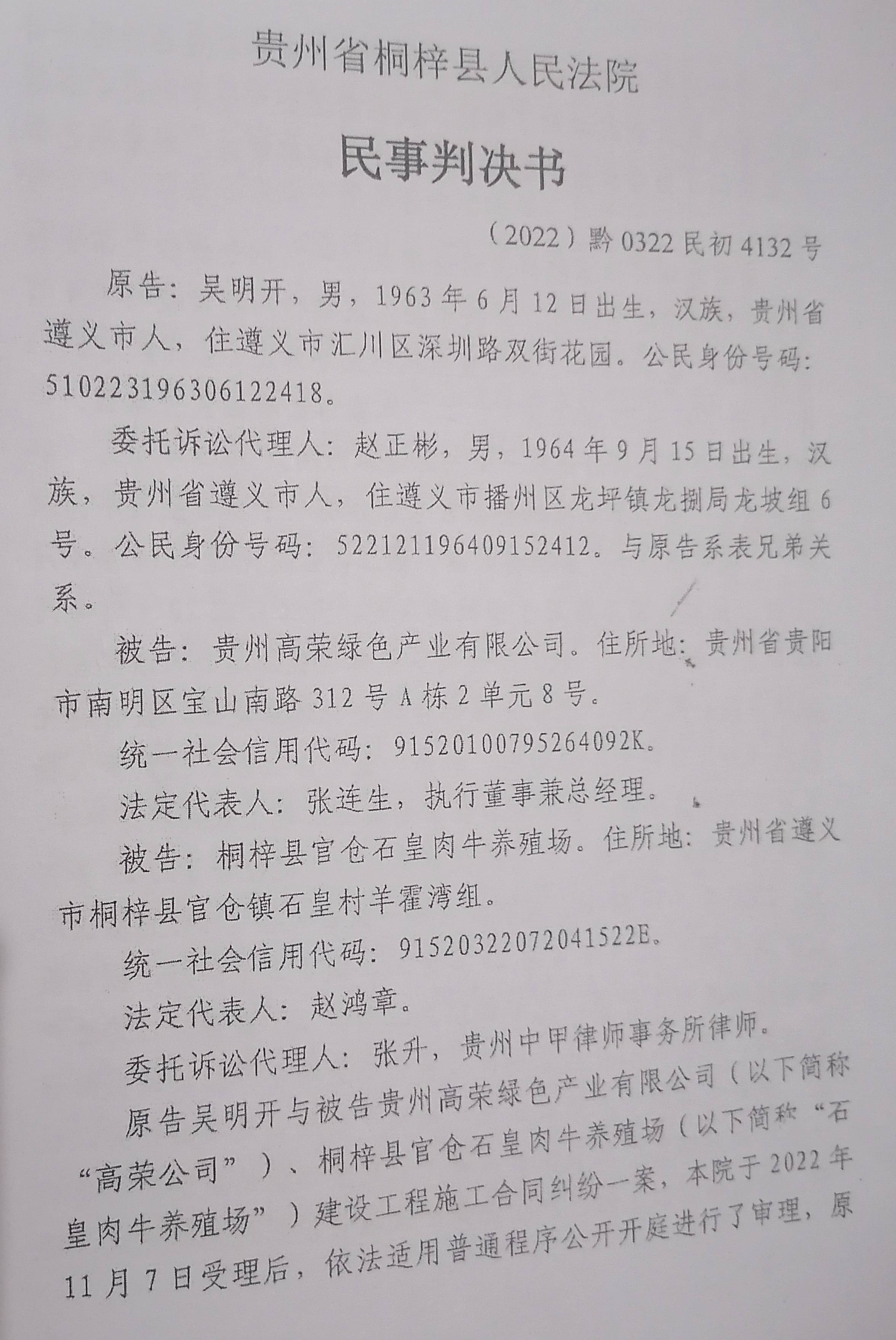 宝博体育,宝博,宝博体育官网,宝博app下载,宝博体育网址,宝博体育官方网站,宝博体育注册,宝博体育靠谱吗,宝博体育登录,宝博体育入口,宝博体育注册,宝博官方网站,宝博APP,宝博注册,宝博网址事情源于三份关键协议与两级法院的不同判决:1.合作基础:养殖场与高荣公司的“投资约定”2014年4月9日,贵州高荣绿色产业有限公司(以下简称“高荣公司”)与养殖场签订《养殖项目合作协议》,约定高荣公司以全额投资(暂定1000万元)方式合作,养殖场以项目参与,双方按51%、49%分配股权;约定项目建设由高荣公司主要负责组织资金。养殖场协同管理,只负责协调土地租用。2.施工关系:高荣公司与施工方吴明开“工程约定”。2014年4月28日,高荣公司单独与吴明开签订《施工合同书》,将养殖场扩建工程(土石方、三通一平、护坡堡坎等)发包给吴明开,合同仅有高荣公司与吴明开的签字盖章,赵先远未参与其中。此后双方两次确认债务:2014年9月23日,高荣公司与吴明开约定终止合同,确认工程款641633.32元、保证金50万元及未收方30万元;2014年12月10日,高荣公司出具《承诺书》,注明拖欠吴明开工程款941633元、保证金50万元,合计1441633.00元,并承诺付款责任由高荣公司承担。3.判决反转:养殖场被“追加”连带责任。一审(贵州省桐梓县人民法院民事判决书(2022)黔0322民初4132号):认定合同关系仅存在于高荣公司与吴明开之间,判决高荣公司独立支付所拖欠的工程款941633.00元,驳回吴明开对养殖场的诉求。二审(遵义市中级人民法院,2023黔03民终4620号)改判:认为《养殖项目合作协议》属“合伙行为”(高荣公司全额投资、双方按比例分利),合伙人需对合伙债务担责,最终判决高荣公司与养殖场连带支付941633.00元及利息(2015年1月1日起算,分阶段按银行利率/LPR计息)。