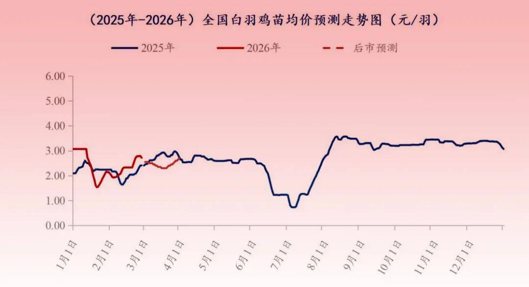 白羽肉鸡鸡苗:从鸡苗供应来看,预计3月份鸡苗出苗量依旧呈现增加趋势,对于鸡苗价格利空;从毛鸡价格来看,毛鸡价格仍有下滑空间,下滑至低位后反弹,鸡苗价格会跌至低位后回调;从种禽端排苗计划来看,中大型种禽企业排苗计划尚可,小厂排苗计划一般;从养殖端补栏来看,养殖端出栏毛鸡仍存在盈利,叠加赶“五一”前毛鸡出栏,养殖端存在一定补栏需求,对于鸡苗价格有一定支撑;从养殖难度来看,3月份养殖难度依旧较大,利空鸡苗市场;从养殖成本来看,养殖端或控制鸡苗成本,对于高价苗存在抵触。综合考虑下,预计全月鸡苗价格整体呈“V”字型走势,苗价先落后涨,涨幅有限。